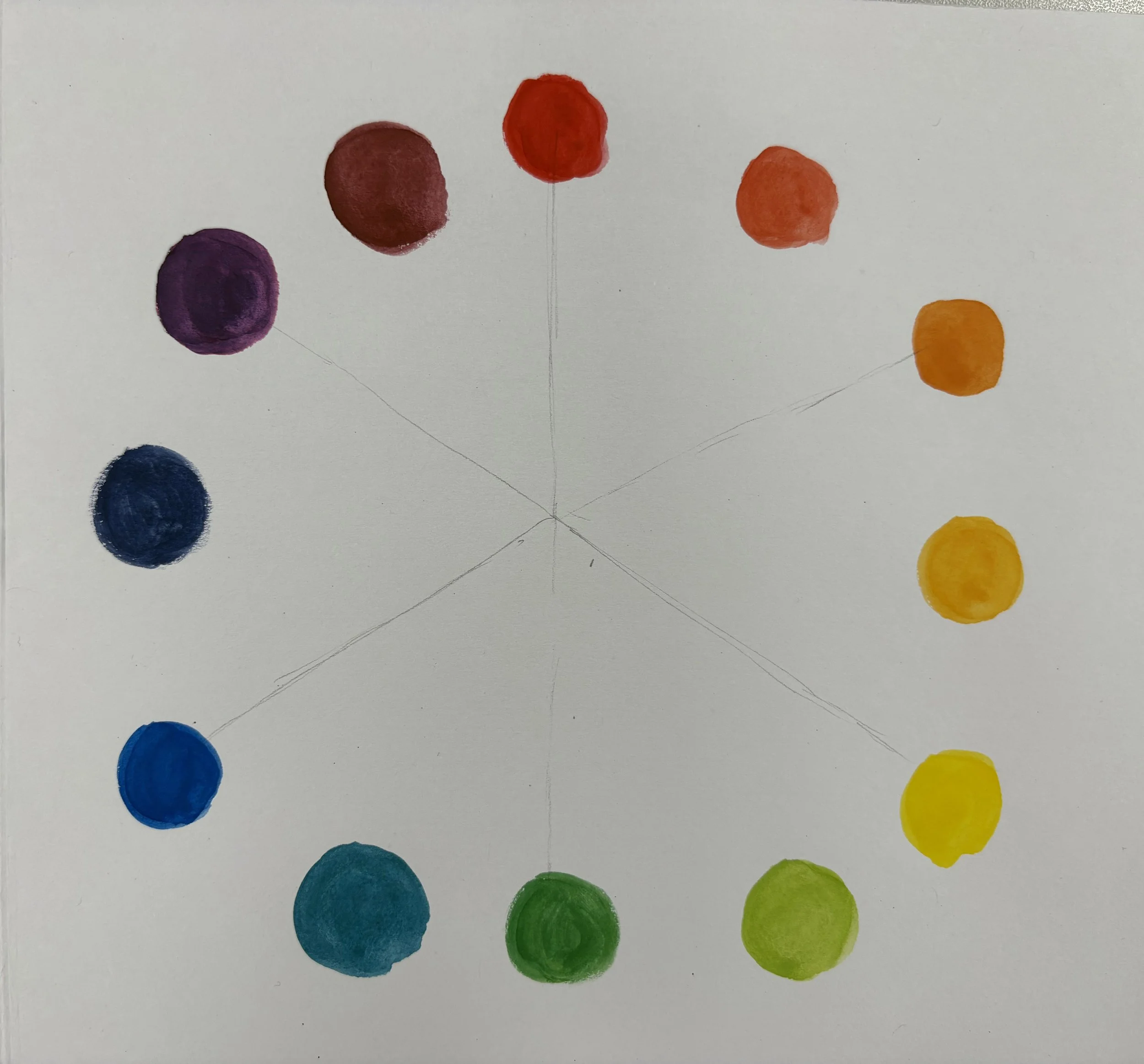 Both Tring and Astley Cooper have created the opportunity for me to teach colour theory lessons using two distinctly different methods. One school teaches pupils to create their own colour wheel from scratch in their sketchbooks. The other prefers a worksheet. Both schools introduce painting with watercolours and to strictly use the Primary Colours only to create their Secondary and Tertiary/Intermediate colours.
